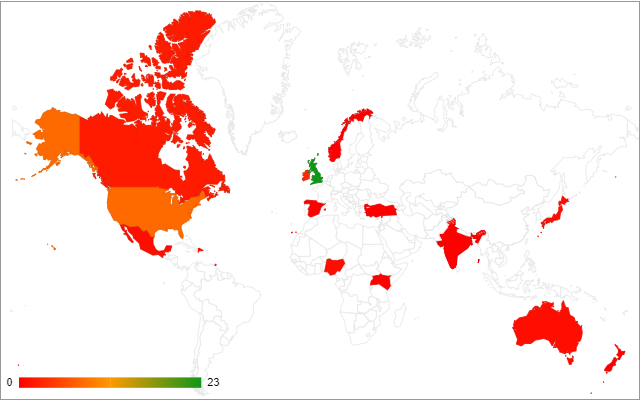 Unsurprisingly,the United Kingdom, United States and Canada are the top three viewers of the blog.