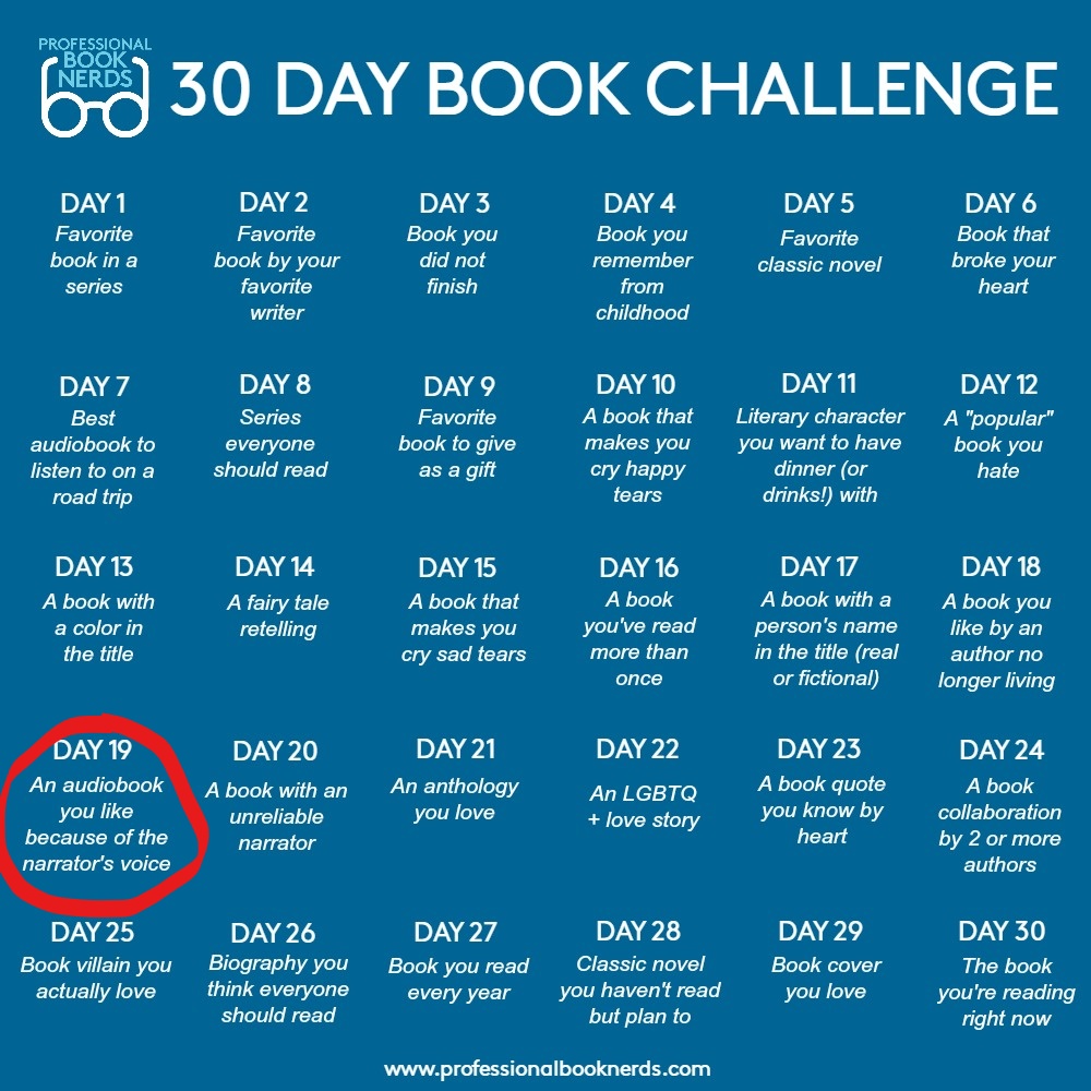 Taking advantage of a rare quiet moment, let's throw another entry into the 30 Day Book Challenge, namely today An audiobook you like because of the narrator's voice. Now, before selecting a book, I'm going to relate a terrifying incident from my student days. My early student days. Imagine, if you will, a young and… Continue reading 30 Day Book Challenge: Day 19!